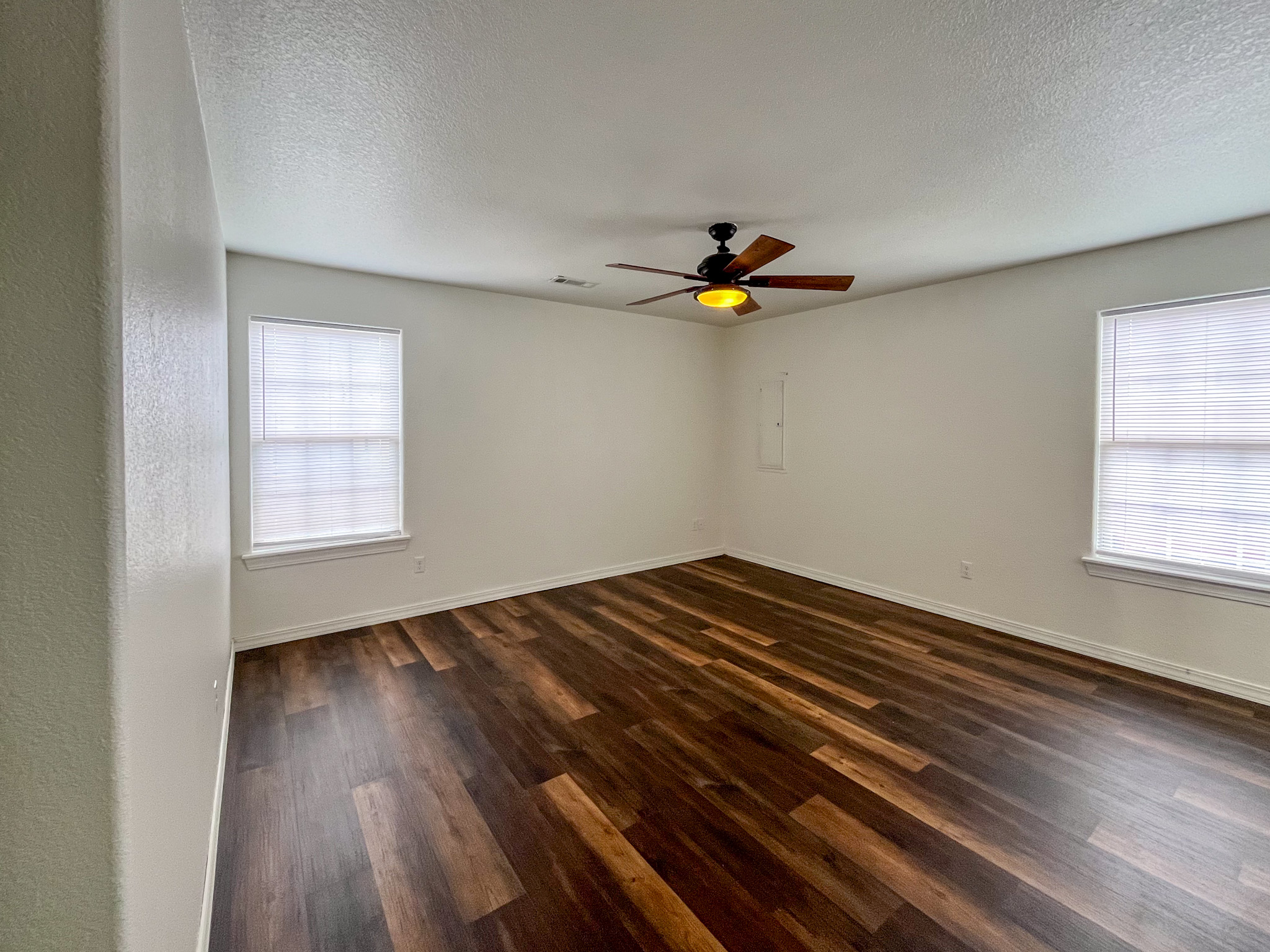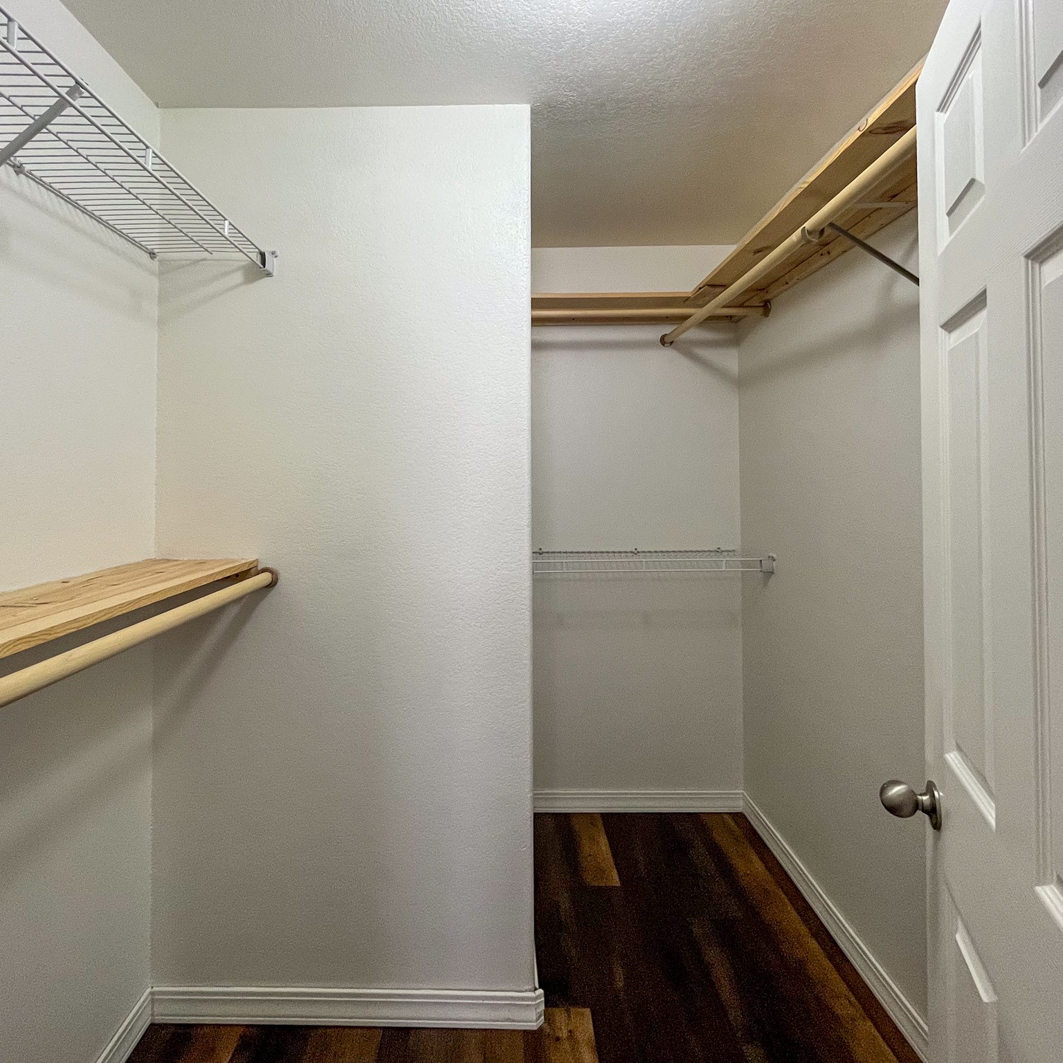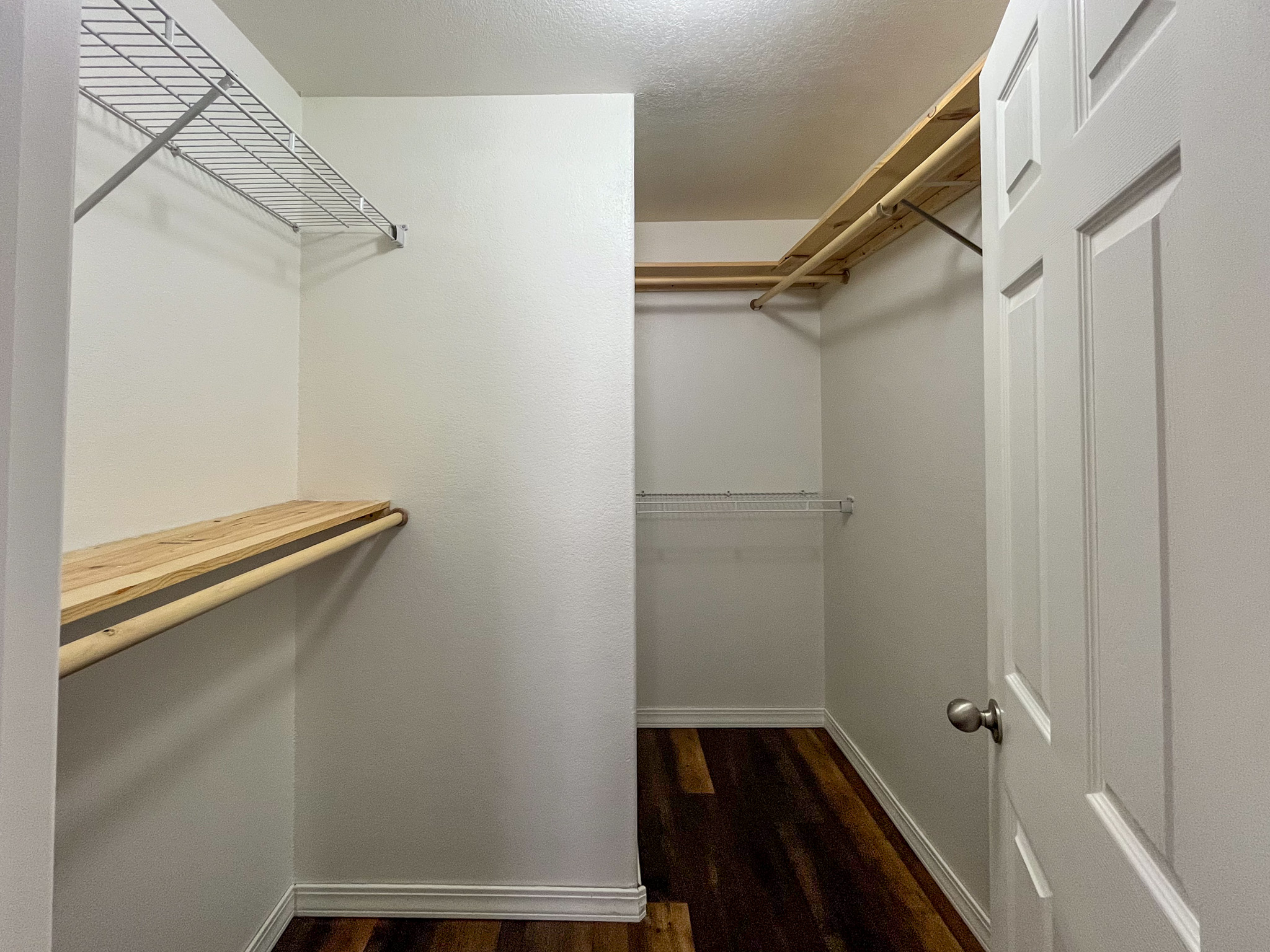The master bedroom has its own private bathroom and walk-in closet, while the two additional bedrooms offer generous space and storage.