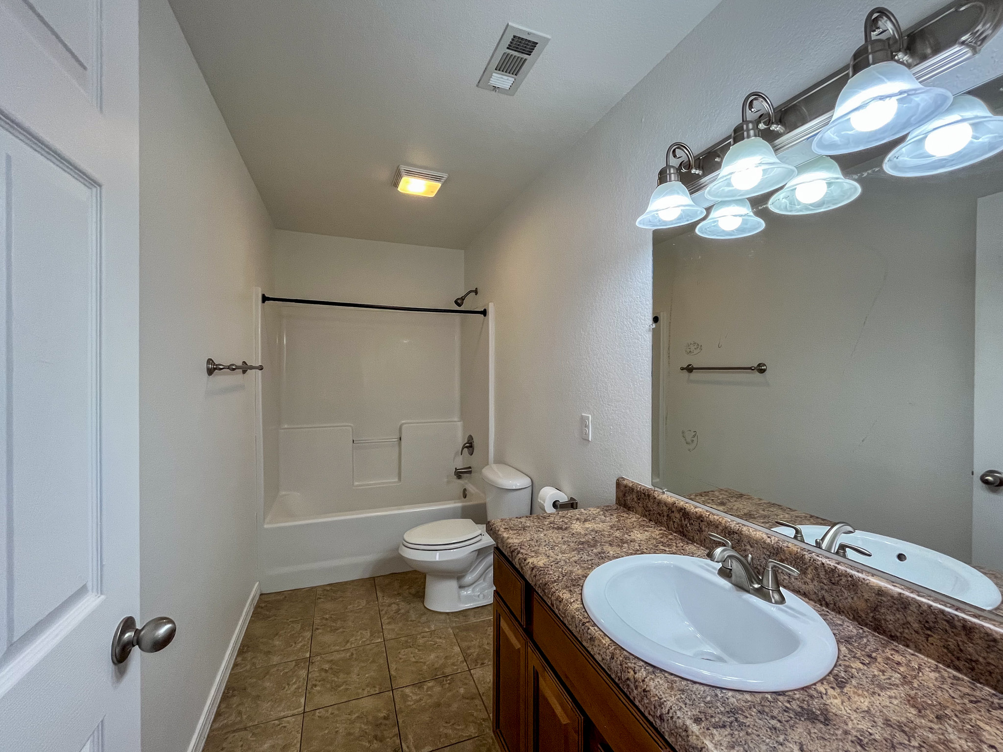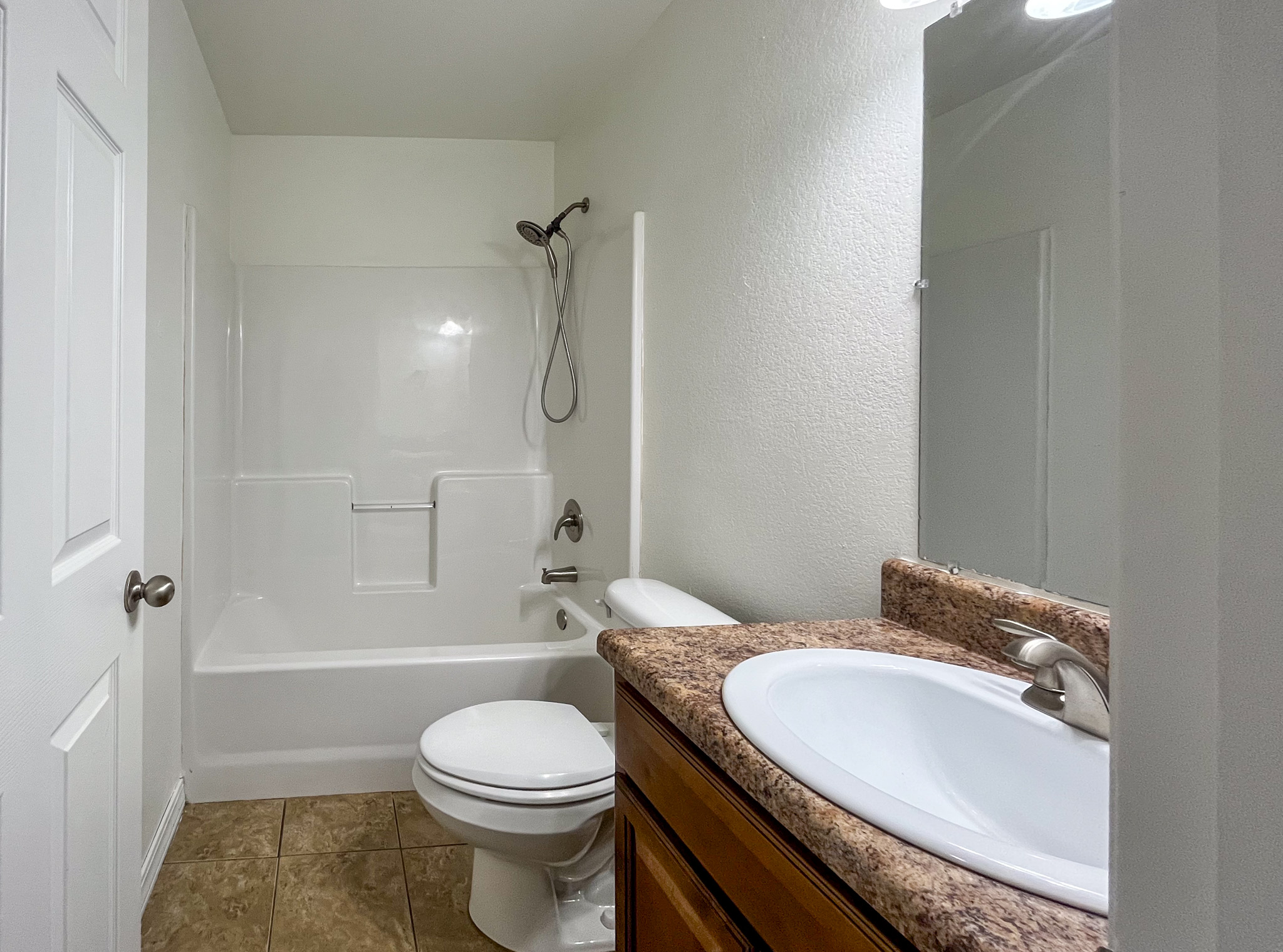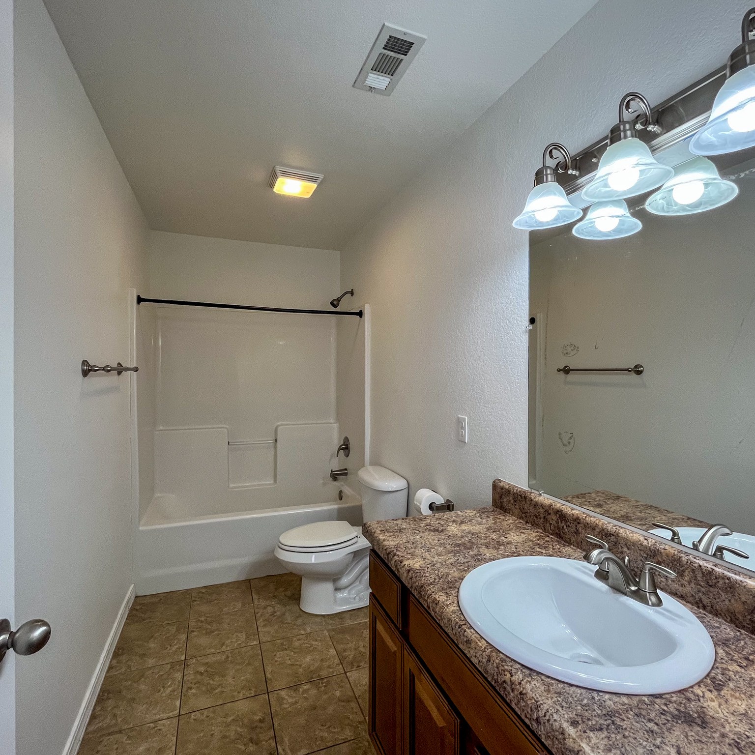 The master bedroom has its own private bathroom and walk-in closet, while the two additional bedrooms offer generous space and storage.