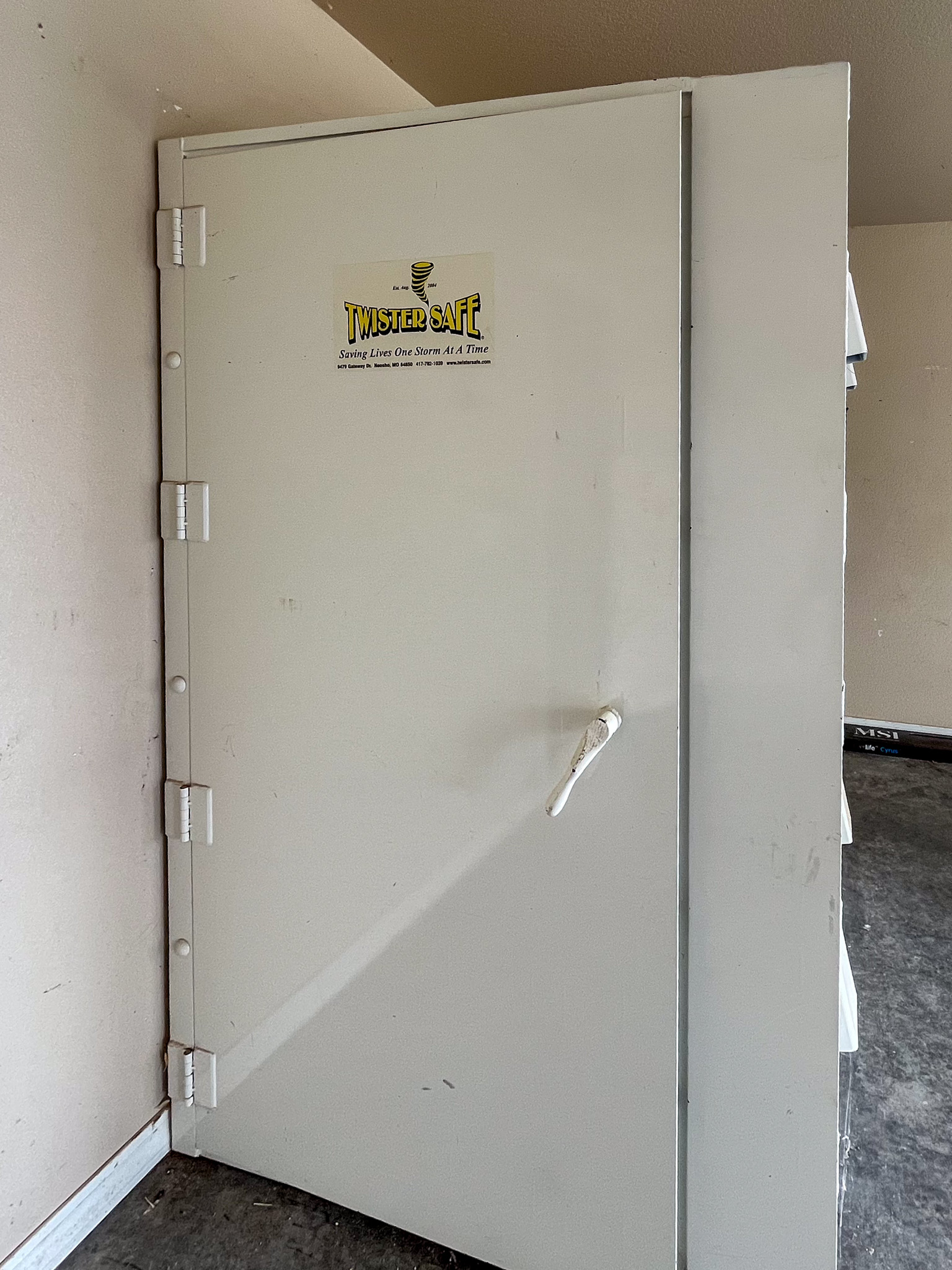 This home also features smart tech like a Google thermostat and video doorbell, solar panels to help lower energy bills, and a two-car garage with an above-ground tornado shelter for extra peace of mind.
